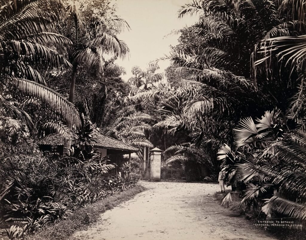Peradeniya’s iconic avenues—particularly the double coconut palms and towering royal palms—were deliberate aesthetic experiments designed to create botanical showpieces that symbolised the sophistication of the empire.